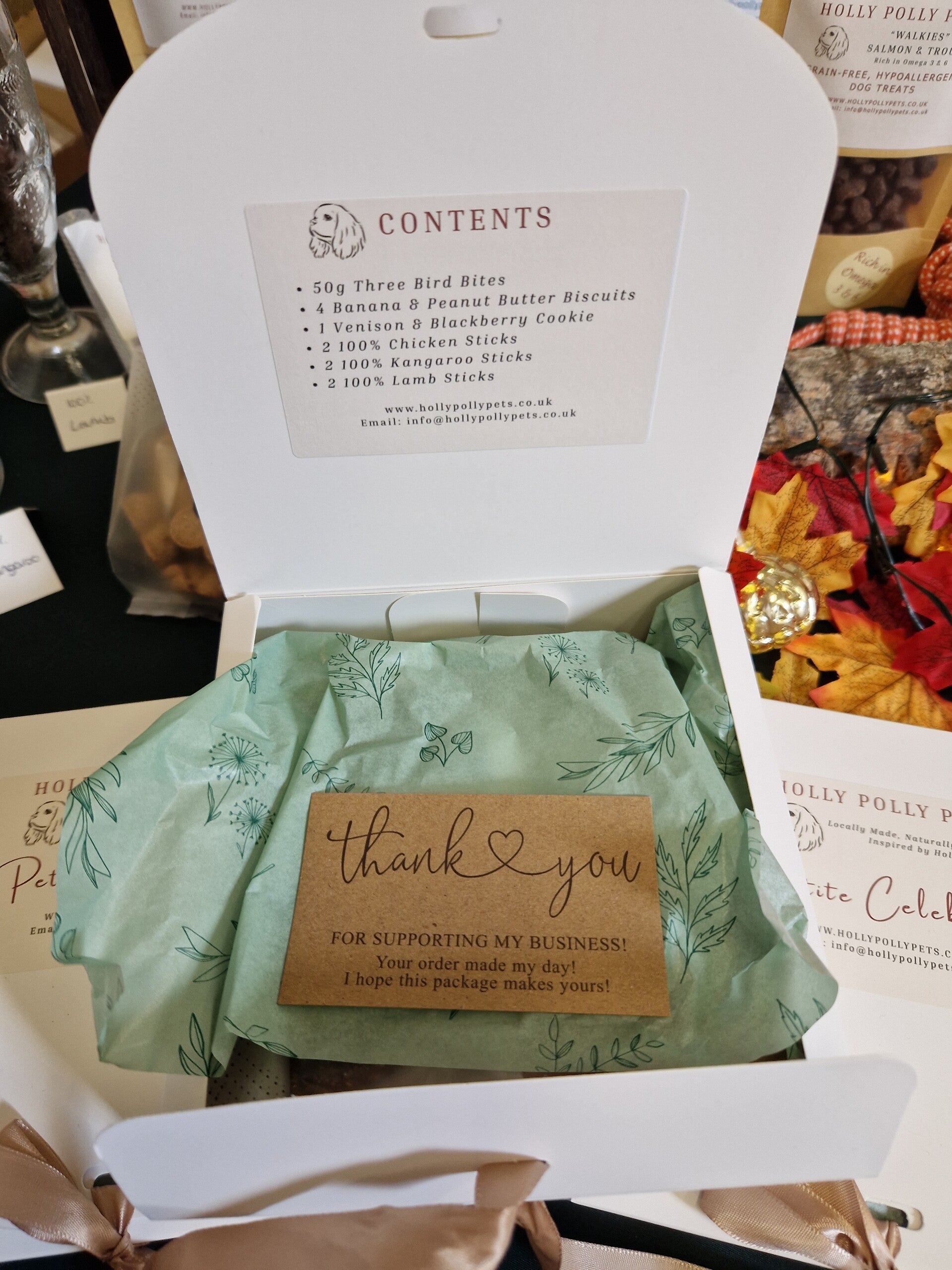 Packed full with all natural ingredient dog treats, this box is great for a birthday, gotcha day or just simple because you love them!